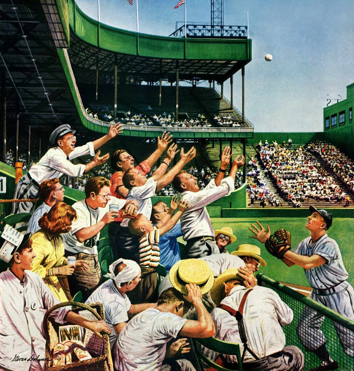 Who's missing from this famous "Saturday Evening Post" cover illustration at the Polo Grounds?